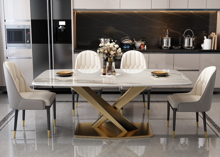 Mặt bàn đá phiến Ceramic nhập khẩu, bề mặt nhẵn mịn, dễ dàng vệ sinh và bảo quản.